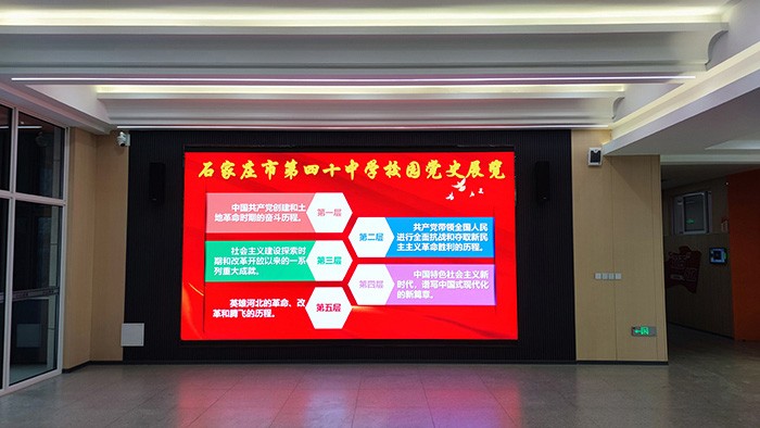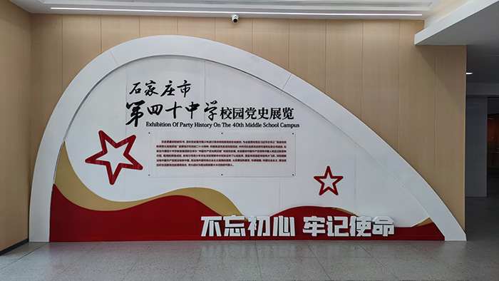 該展覽是省委黨史研究室為營造黨史學習教育濃厚氛圍,引導廣大青少年樹立正確的世界觀、人生觀、價值觀,促進紅色基因傳承,培育和踐行社會主義核心價值觀而與石家莊市政府、石家莊市第四十中學聯(lián)合舉辦的一個“黨史進校園”項目,是以黨史學習教育落實立德樹人、幫助青少年扣好人生第一粒扣子的有力舉措,也是探索“黨史進校園”有效途徑的一次有益嘗試。展覽利用學校新啟用的多能樓一至五樓走廊空間,分五個展區(qū)布展,結(jié)合青少年教育特點,利用文字、展板以及電子影像視頻,展示了黨領(lǐng)導河北人民波瀾壯闊的百年奮斗歷程。
